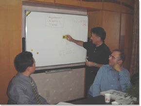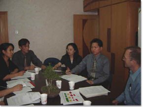 2002年聯(lián)合國國際開發(fā)署醫(yī)療咨詢專家Cliff Letton總裁在求是總部交流中國疾病預(yù)防控制中心(CDC)項(xiàng)目。