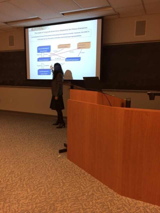 2013年11月22日,陳慶博士以中國國有企業(yè)公司治理現(xiàn)狀探索為題,為美國斯克蘭頓(The University of Scranton)大學(xué)卡尼亞管理學(xué)院呈現(xiàn)了一場論述深刻的英文演講。在2個小時的報告中,陳慶博士首先對中國國有企業(yè)的公司治理現(xiàn)狀進(jìn)行了全面的闡述,隨后對我國國企公司治理所取得的成績、存在的問題及原因進(jìn)行了深入的總結(jié)與分析,最后向大家講解了中國國企正在踐行的一系列公司治理的有效做法。陳慶博士的觀點引起了在座的卡尼亞管理學(xué)院管理學(xué)教授們的廣泛興趣,雙方就此展開了熱烈的討論。