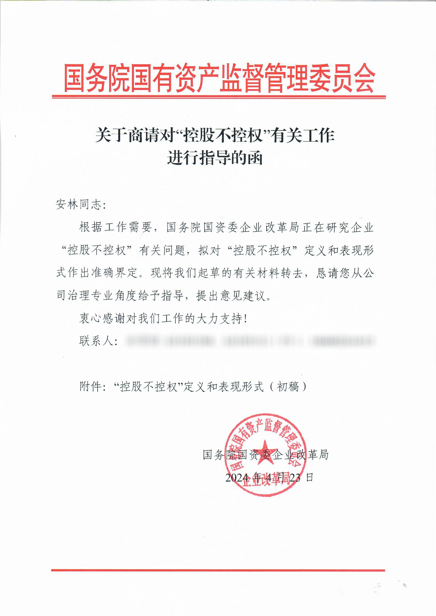 為此,求是咨詢董事長、管理學(xué)博士安林受國務(wù)院國資委企業(yè)改革局的邀請,針對國資委企業(yè)改革局起草的“控股不控權(quán)”的定義和表現(xiàn)形式(初稿),從公司治理角度給于指導(dǎo)并提出相關(guān)建議。