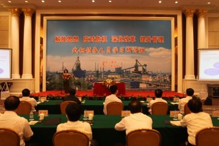 為解放思想,應(yīng)對危機,深化改革,提升管理,武鋼集團在湖北咸寧碧桂園鳳凰溫泉酒店,隆重開辦了為期三天的武鋼領(lǐng)導(dǎo)人員學(xué)習(xí)研討班。學(xué)習(xí)班還邀請了軍事經(jīng)濟學(xué)院院長周來信少將、神化集團董事長張喜武、亞琛工業(yè)大學(xué)冶金系主任Bleck教授、中國鋼鐵協(xié)會名譽會長吳溪淳、GE公司中國區(qū)總裁Mark、海爾集團董事會主席張瑞敏作精彩的專題講座。