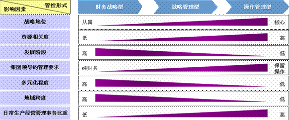 確立母公司對其子公司的管理模式,通常可依據(jù)子公司戰(zhàn)略地位、發(fā)展階段、資源相關(guān)性、集團(tuán)的管理要求等七大因素而定。