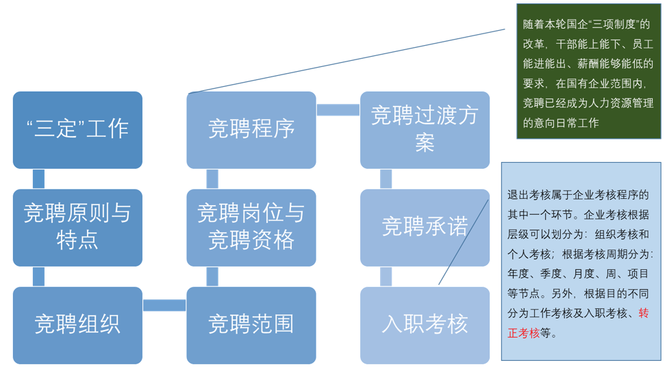 競聘不僅僅是一個選拔的過程,應(yīng)該是上承企業(yè)的“三定” ,下接企業(yè)的績效評估的全過程。