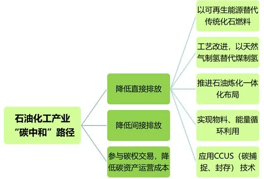 石油化工產(chǎn)業(yè)“碳中和”的主要路徑是高碳轉(zhuǎn)低碳、技術(shù)創(chuàng)新、循環(huán)利用、碳權(quán)交易方式。