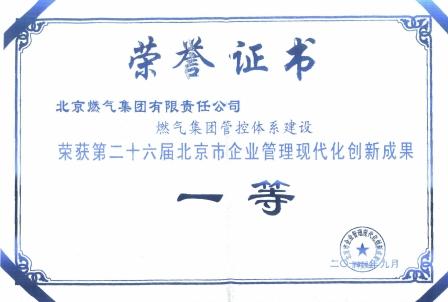 2、2010年5月啟動的北京控股集團(tuán)北京燃?xì)饧瘓F(tuán)公司母子管控體系構(gòu)建咨詢項目(歷時5個月);(2011年底以“燃?xì)饧瘓F(tuán)管控體系建設(shè)”榮獲第26屆北京市企業(yè)管理現(xiàn)代化創(chuàng)新成一等獎。)