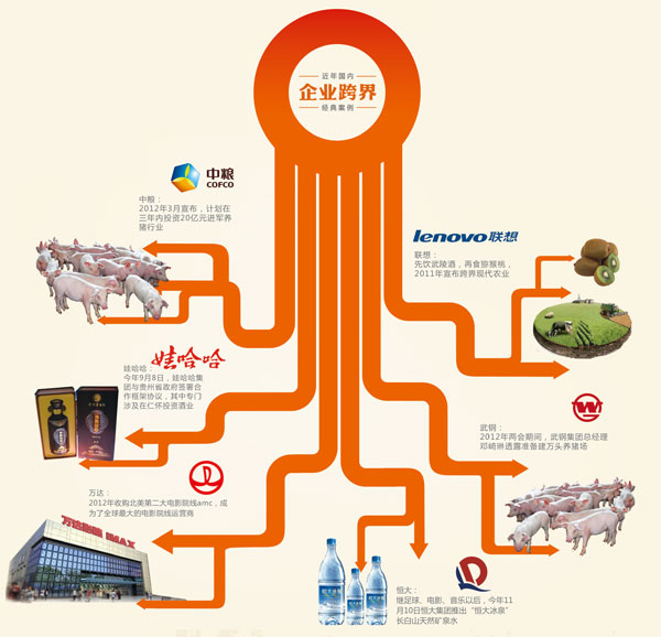 聯(lián)想、中糧、恒大、萬達(dá)與娃哈哈,中國(guó)絕大多數(shù)知名企業(yè)集團(tuán),正擠在“跨界”這條路上。
