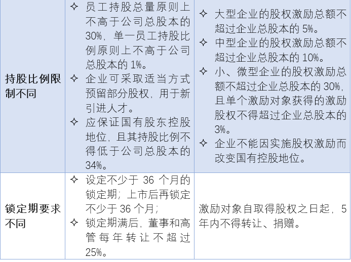 值得注意的是,結(jié)合《企業(yè)國有資產(chǎn)交易監(jiān)督管理辦法》中關(guān)于國有控股企業(yè)及國有實(shí)際控制企業(yè)的定義,從保障國有控股地位的角度,實(shí)施員工持股后,國有股東持股比例除了不得低于總股本的34%以外,還應(yīng)保證其為第一大股東。