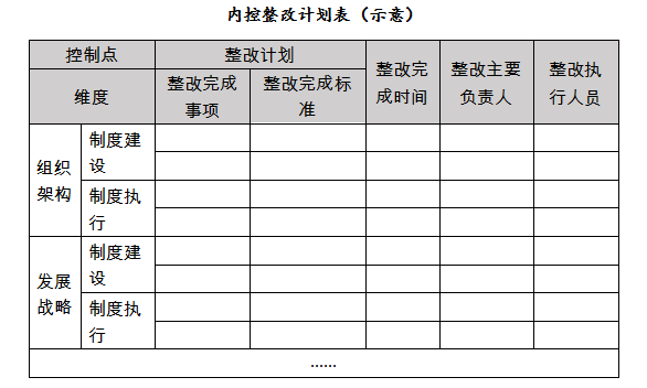 內(nèi)控整改要落實(shí)到位,必須制定嚴(yán)密的整改計(jì)劃。企業(yè)需要基于對照內(nèi)控指引發(fā)現(xiàn)的問題,制定內(nèi)控整改計(jì)劃,具體包括:明確整改完成事項(xiàng)、完成標(biāo)準(zhǔn)、完成時間、主要負(fù)責(zé)人、具體執(zhí)行人等。