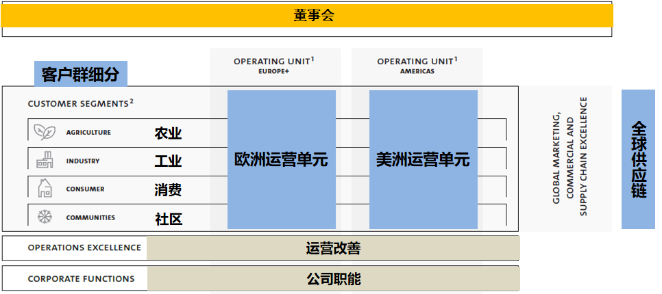 為更好地進(jìn)行全球資源配置和業(yè)務(wù)整合,近年來,德國(guó)鉀鹽集團(tuán)大力推進(jìn)集團(tuán)組織管控體系變革,采用新的矩陣型組織管控體系(如下圖所示),加強(qiáng)跨國(guó)家區(qū)域的戰(zhàn)略決策和經(jīng)營(yíng)管理協(xié)調(diào)效能。