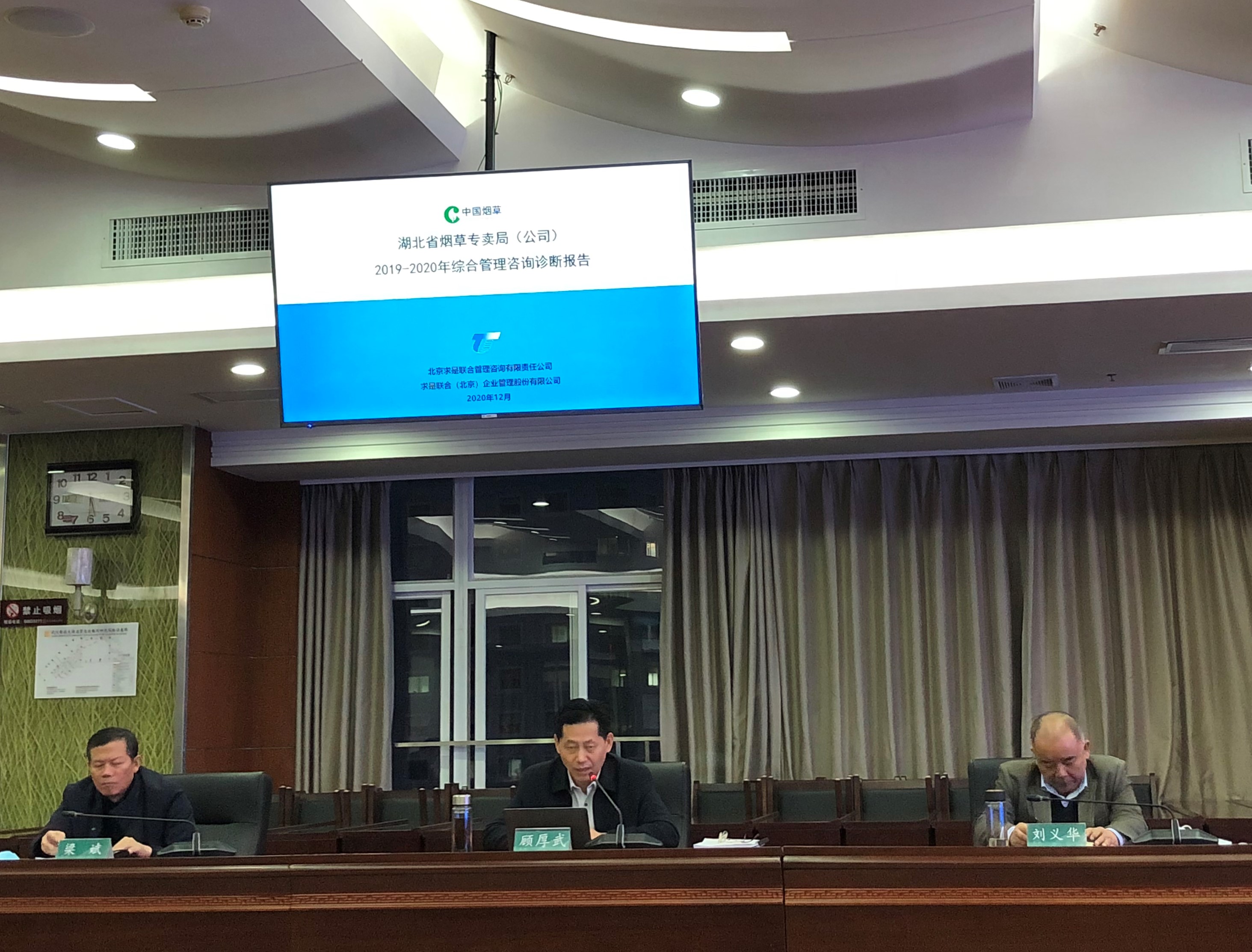 2020年12月13日,湖北省煙草專賣局(公司)召開(kāi)全省商業(yè)系統(tǒng)全面管理診斷工作匯報(bào)會(huì)。省局(公司)領(lǐng)導(dǎo)、各主要職能處室負(fù)責(zé)人參加了會(huì)議。求是咨詢總經(jīng)理陳慶博士出席、副總經(jīng)理郭良琴女士,分別作咨詢內(nèi)容匯報(bào)和咨詢工作總結(jié)。綜合管理診斷報(bào)告獲會(huì)議高度認(rèn)可。