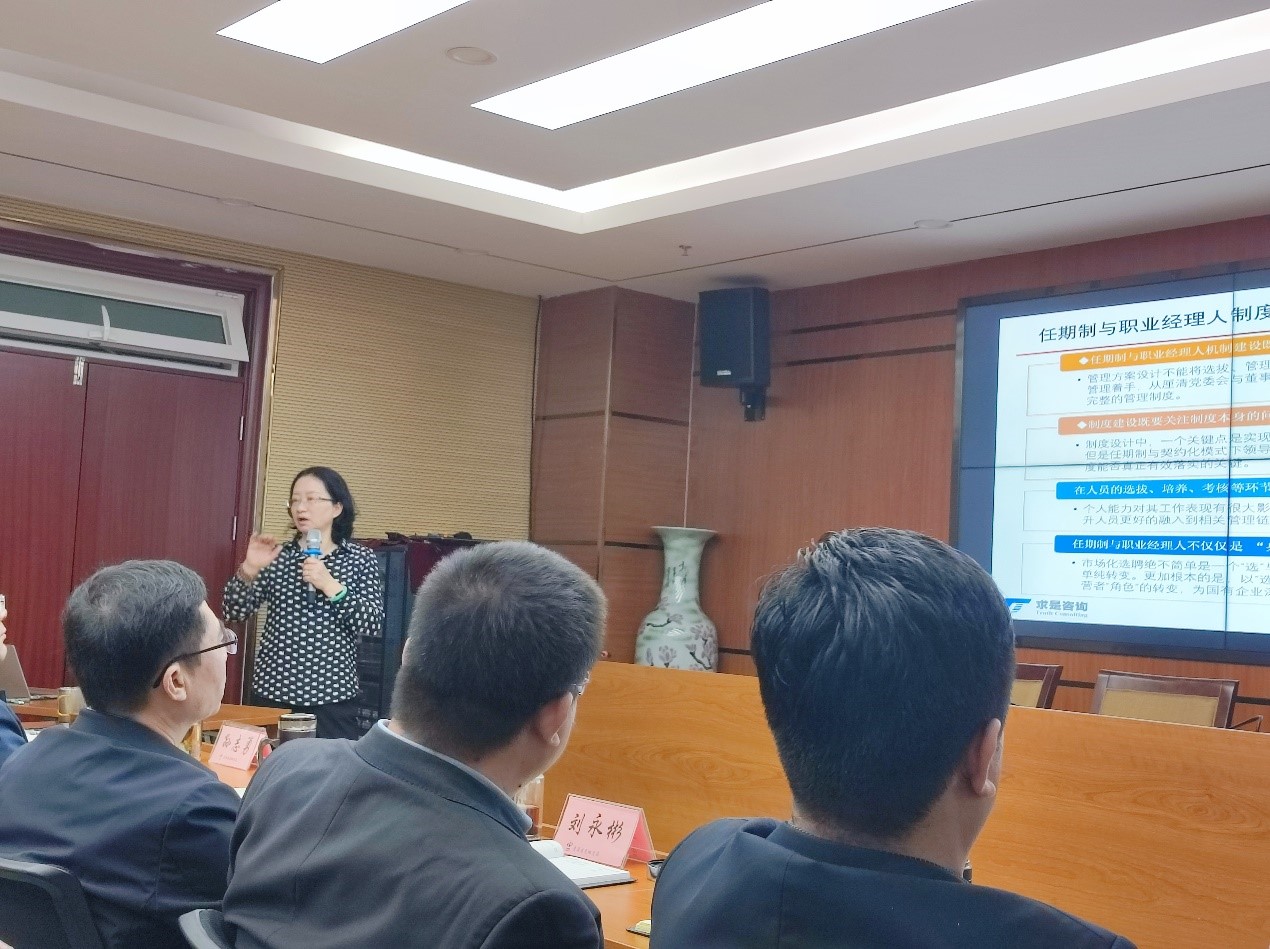 2021年9月23日,求是咨詢總經(jīng)理陳慶博士應(yīng)青海煤炭地質(zhì)局暨青海煤炭工程有限公司邀請,為其開展《國企三年行動改革與任期制契約化管理》專題培訓(xùn),局(公司)領(lǐng)導(dǎo)劉永彬董事長、王明宏總經(jīng)理及其他中層以上干部、分子公司班子成員等參加了學(xué)習(xí)。